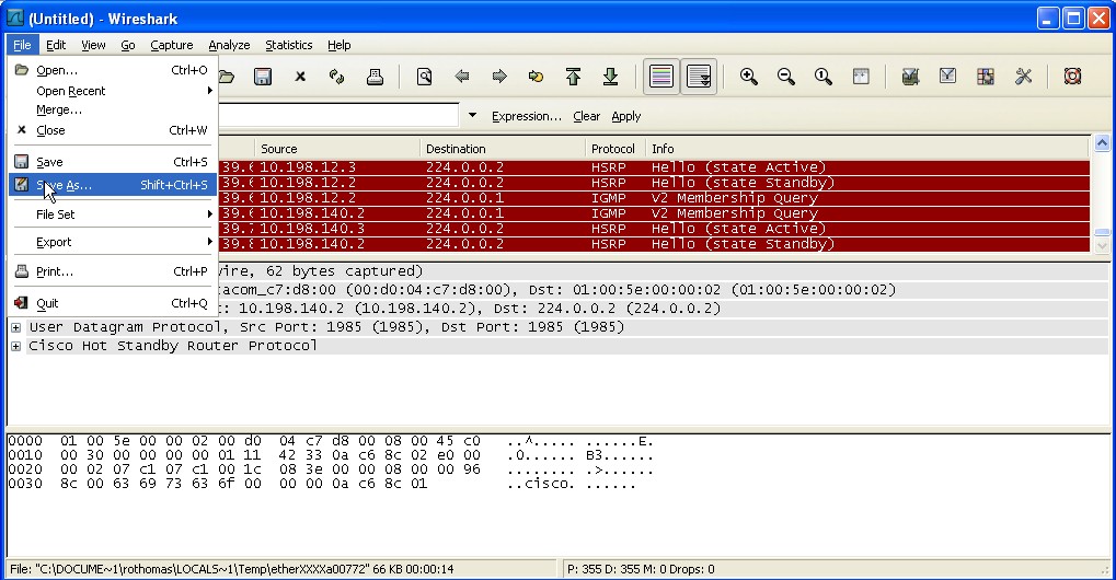 3D. บันทึกการจับแพ็คเก็ตเป็นไฟล์ .pcap