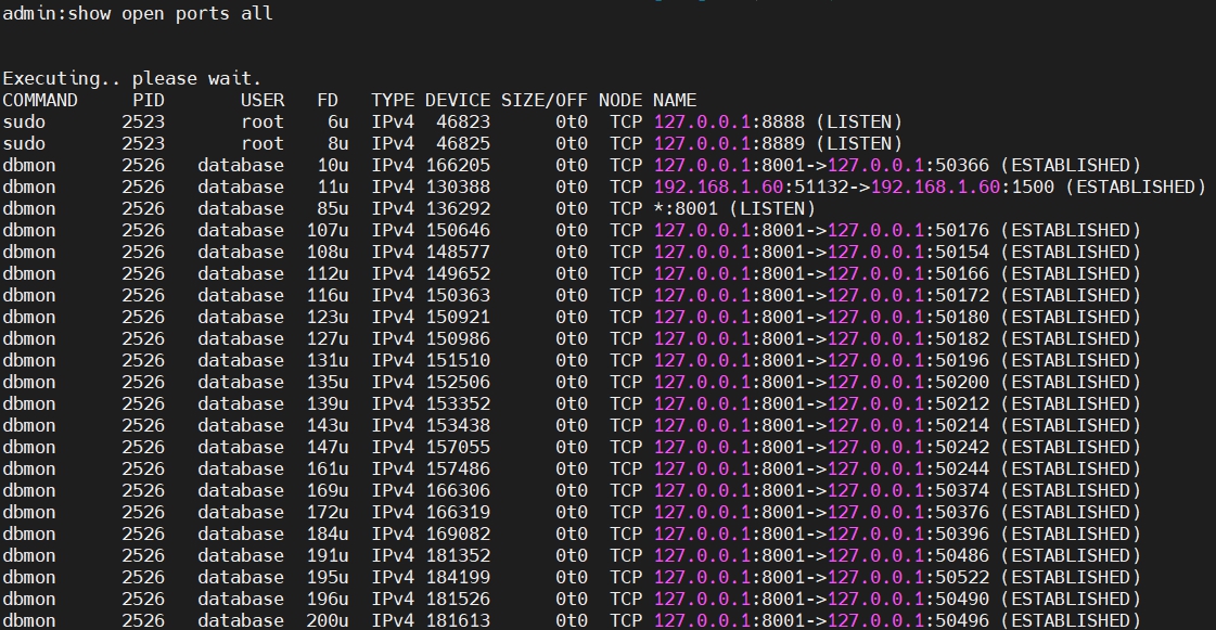 show open ports all ใช้สำหรับตรวจสอบ network port ที่เปิดอยู่บน CUCM ทั้งหมดเช่นกัน