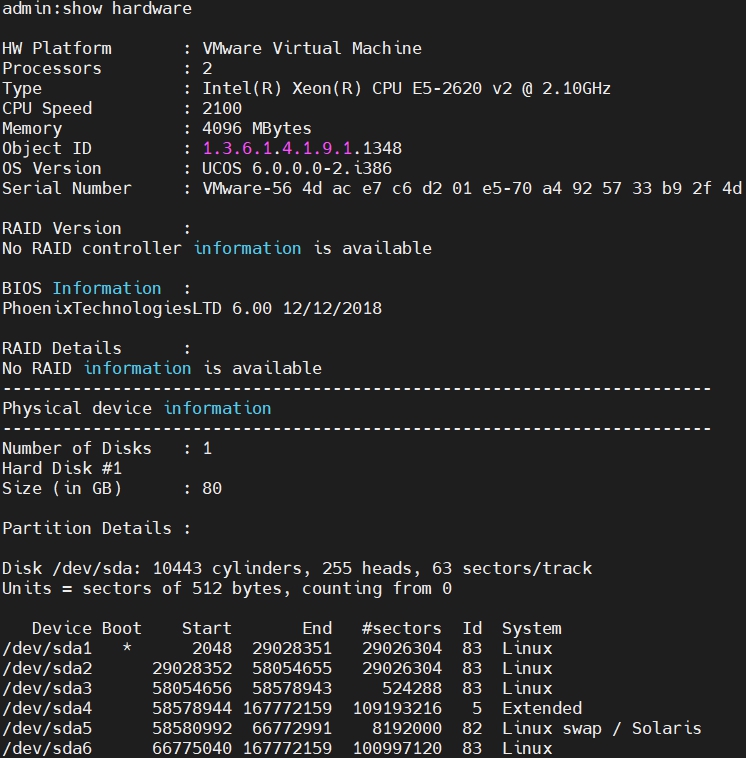 show hardware แสดง Hardware ที่ Guest CUCM ทำการติดตั้งอยู่