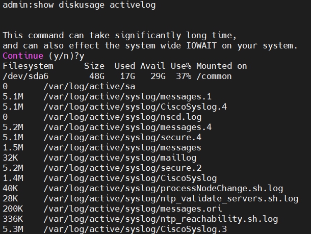 show diskusage activelog ใช้แสดงสถานะการใช้งานของ Disk