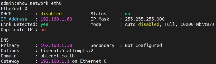 show network eth0 ใช้สำหรับแสดง IP, Subnet Mask และ Gateway ของ CUCM