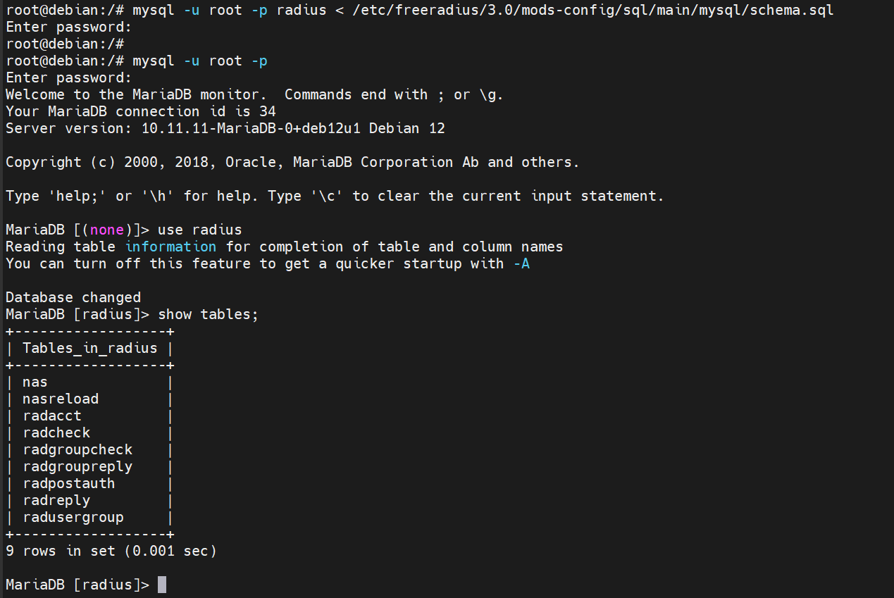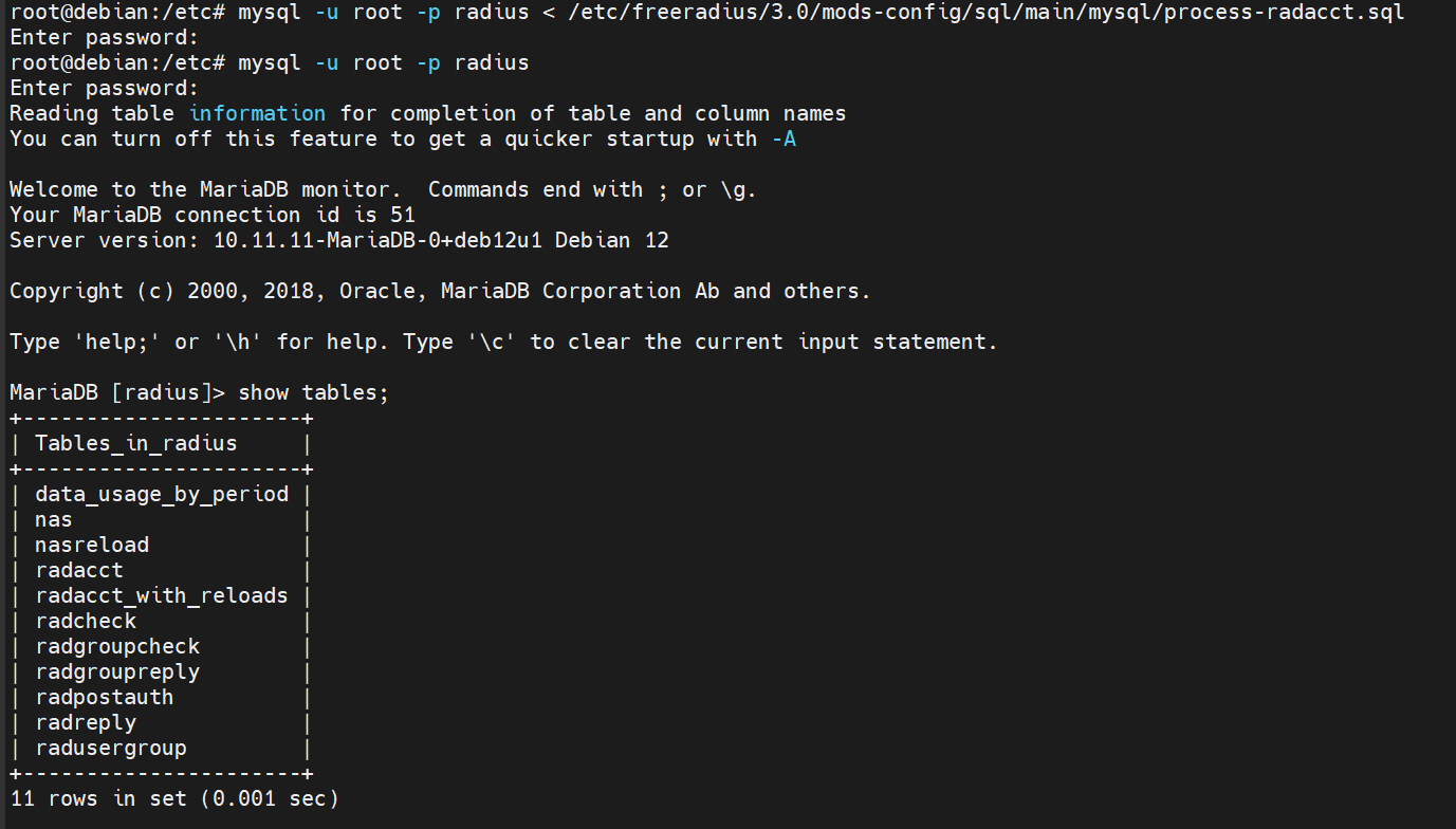วิธีการติดตั้ง FreeRADIUS + MariaDB บน Debian 12