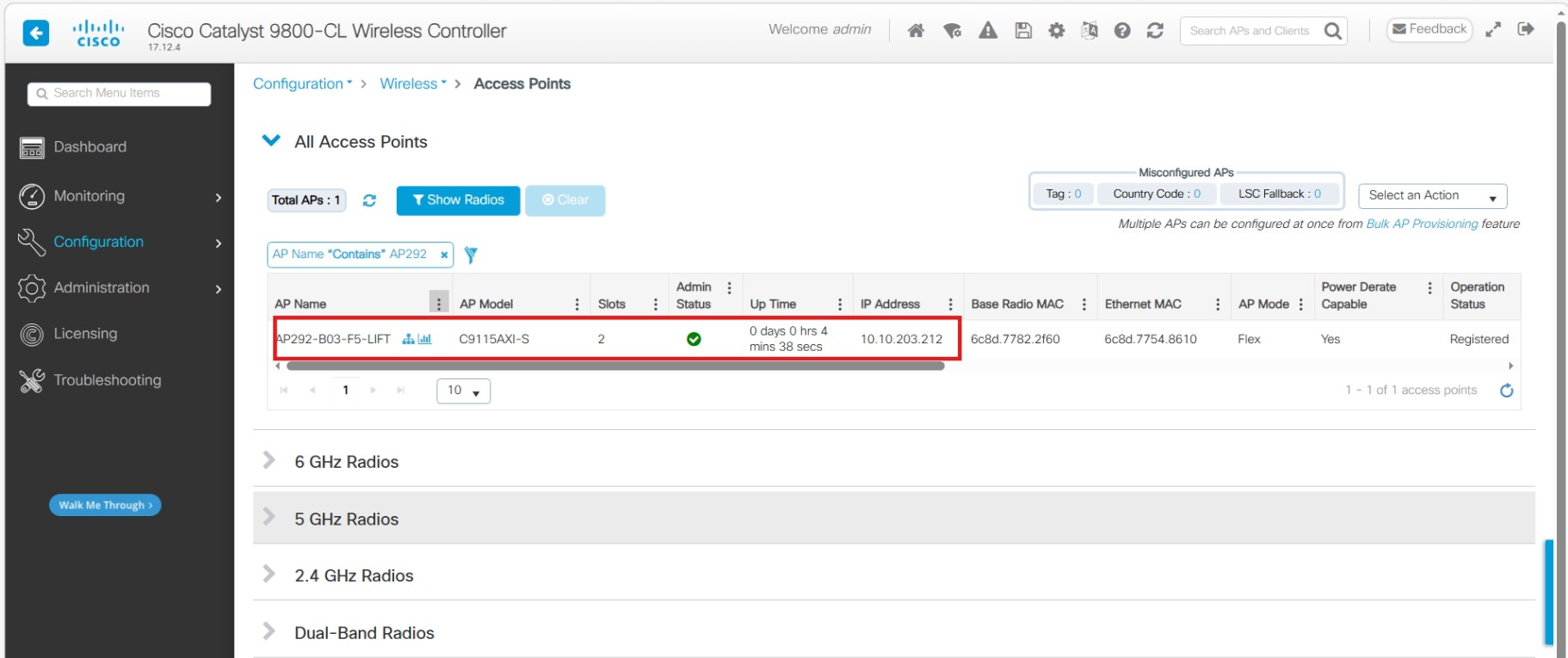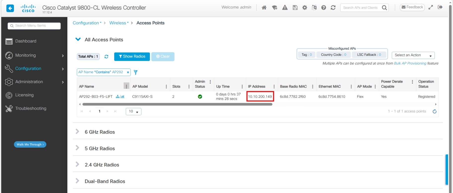 Step 1: ไปที่ AP ตัวที่มีปัญหาโดยไปเมนู Configuration > Wireless > Access Point (ในตัวอย่าง Octet ที่ 3 ของ IP เป็น .200 ซึ่งจริงๆ ต้องการให้เป็น .203 ซึ่งเป็น VLAN 203 นะครับ )